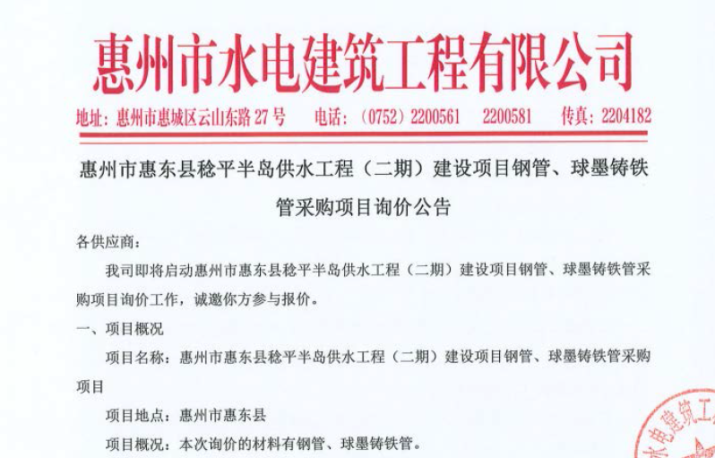 惠州市水電建筑工程有限公司成立于一九六四年四月,隸屬惠州市水務(wù)集團(tuán)有限公司,是一家國(guó)有綜合性施工企業(yè),主營(yíng)水利水電工程、房屋建筑、市政工程等施工業(yè)務(wù)。公司擁有水利水電工程施工總承包一級(jí)、建筑工程施工總承包一級(jí)、市政公用工程施工總承包一級(jí)、公路工程施工總承包三級(jí),公路路基、路面及建筑裝修裝飾專(zhuān)業(yè)承包二級(jí),環(huán)保工程、機(jī)電安裝、河湖整治、輸變電工程專(zhuān)業(yè)承包三級(jí)等經(jīng)營(yíng)資質(zhì)……